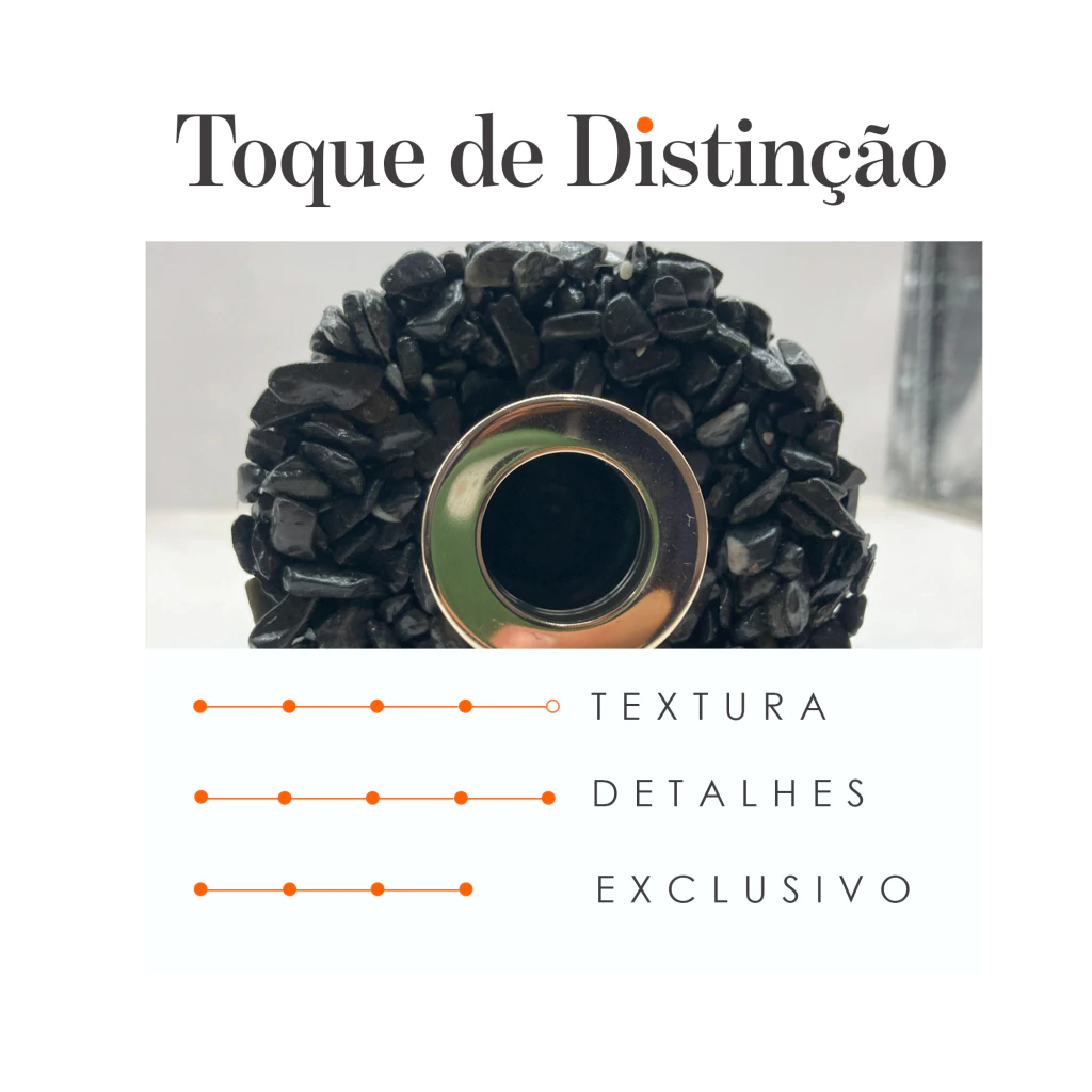 O Aromatizador com Pedras Pretas resolve isso com um toque de elegância. Enquanto perfuma delicadamente o ambiente, também decora com sua presença marcante.
