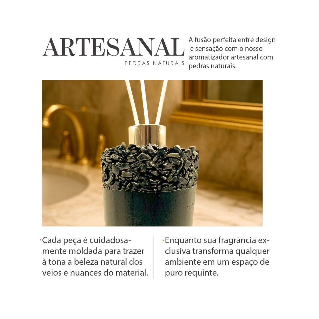 O Aromatizador com Pedras Pretas é a escolha ideal para quem quer unir perfume, estilo e sofisticação em um só produto. Aproveite agora, pois temos poucas unidades disponíveis.