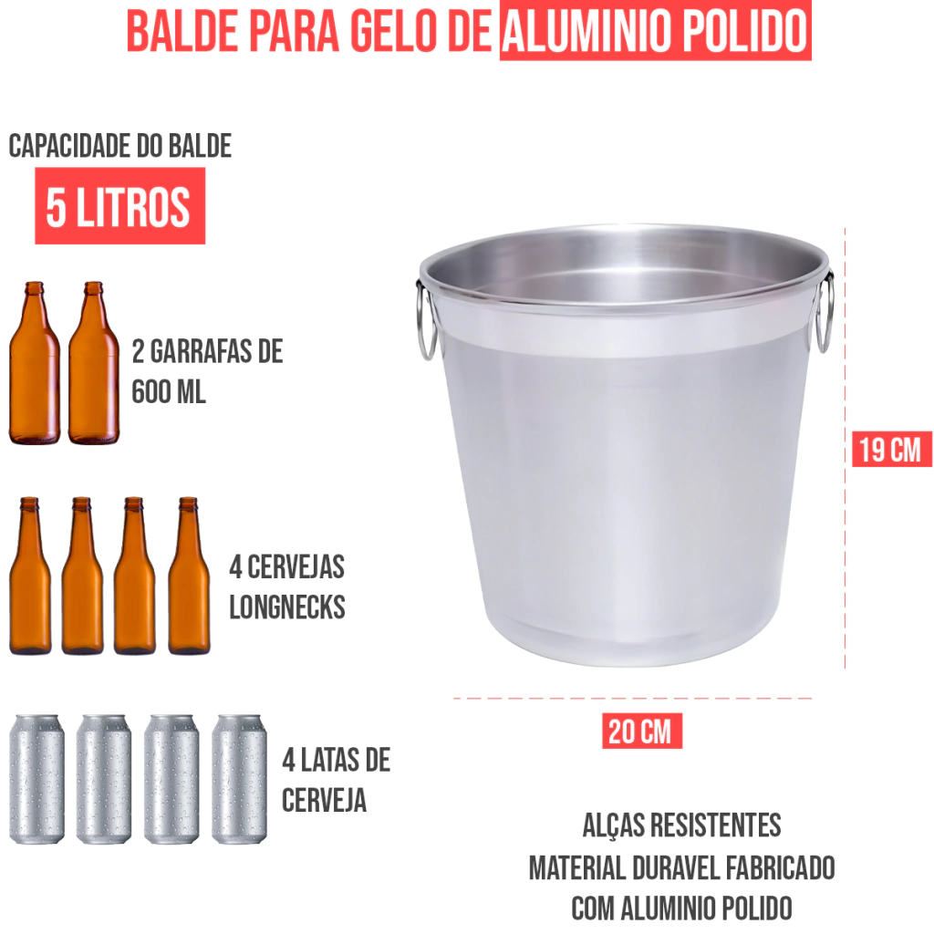 Com o nosso Balde de Gelo 5 Litros, você nunca mais vai passar por isso! Ele possui uma capacidade generosa de 5 litros, o que é suficiente para armazenar até 2 garrafas de 600 ml, 8 long necks ou 3 latas.