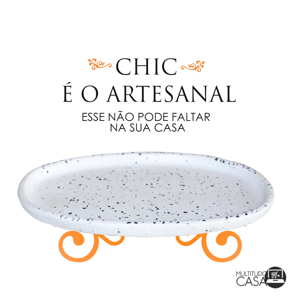 Apresentamos a Porta-Joias ou Bandeja Oval Grande Peônia – uma peça artesanal de cimento com granilite, ideal para quem busca sofisticação e praticidade em um único item.