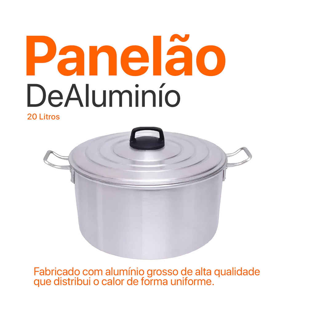 Conheça a Caçarola Grande Industrial  20 Litros em Alumínio Polido com Tampa e Alças Reforçadas: robustez e capacidade que impressionam!