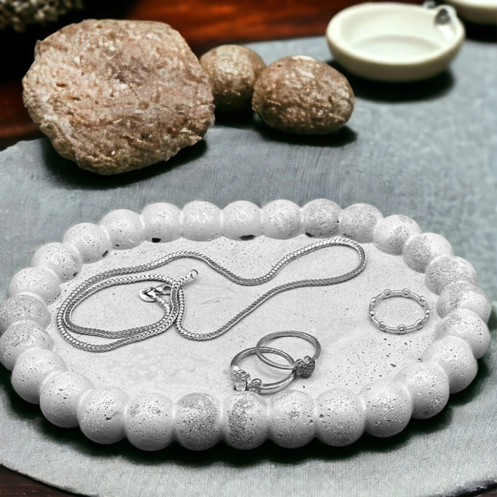 Cansado de perder tempo procurando suas joias? Apresentamos a solução: a Bandeja Para Joias Artesanal De Cimento da Multitudo Casa! Nunca mais se preocupe em encontrar suas peças preciosas.