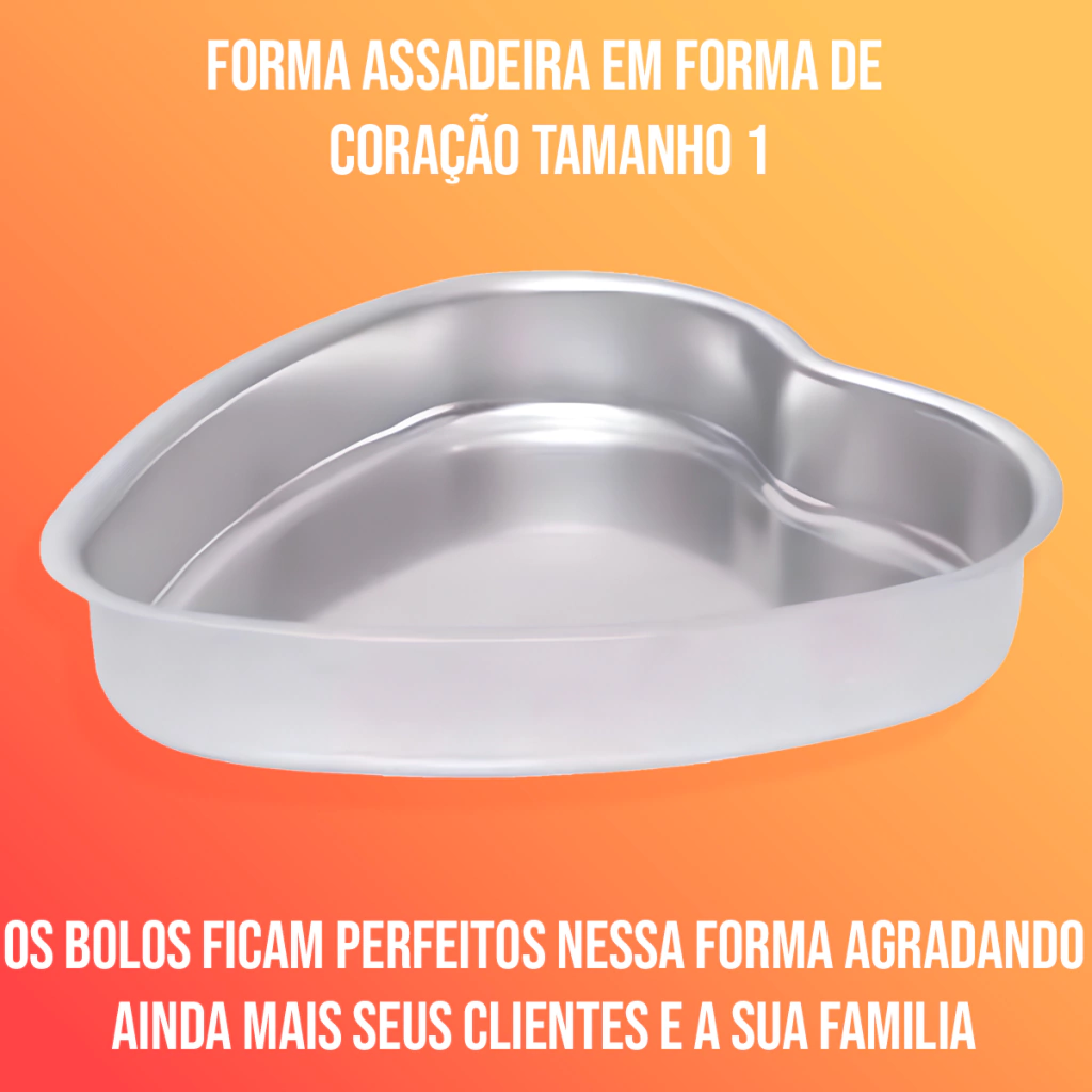 Apresento a você a Nossa Forma Assadeira em forma de coração Tamanho 1 1.1 litro um produto que vai revolucionar a maneira como você prepara suas refeições. Com ela, você pode assar, grelhar ou gratinar pães, bolos, tortas, lasanhas e muito mais em varios tamanhos.