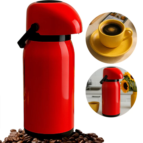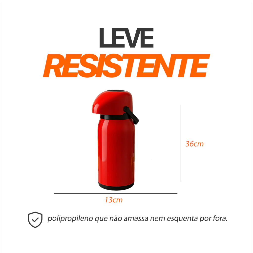 Não perca a chance de ter uma garrafa funcional, moderna e eficiente sempre à disposição. Estoque limitado. Garanta agora sua Garrafa Térmica Vermelha 1,8 Litro com Acionamento por Pressão e transforme sua rotina com mais praticidade.