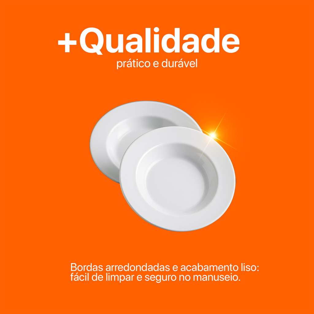Apresentamos o Kit com 12 Pratos Fundos em Melamina Branca de 23 cm, a escolha ideal para quem busca durabilidade, leveza e beleza na hora das refeições.