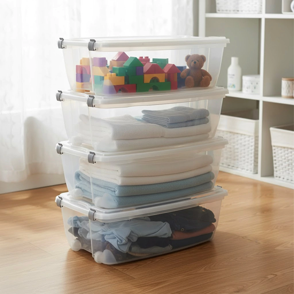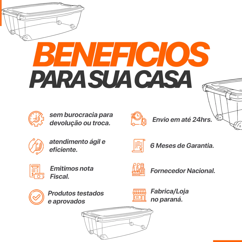 O Contêiner Organizador 38 L foi feito para quem precisa ganhar espaço sem perder tempo. As rodinhas facilitam puxar e levar o box até onde você precisa; a tampa com trava mantém o conteúdo protegido da poeira. Por ser transparente, você identifica tudo de primeira perfeito para closet, quarto, lavanderia, escritório e brinquedoteca.
