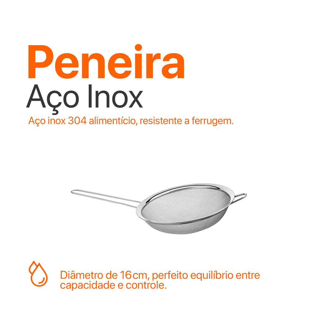 Sabe quando você precisa coar um suco peneirar farinha ou separar líquidos e sólidos e acaba perdendo tempo com utensílios que não funcionam bem ou que enferrujam com facilidade Esse é um problema comum mas fácil de resolver. Apresentamos a peneira em aço inox de 16 cm uma solução prática durável e eficiente para o seu dia a dia na cozinha. E o melhor é que ela está com um preço especial por tempo limitado aqui na Multitudo Casa.