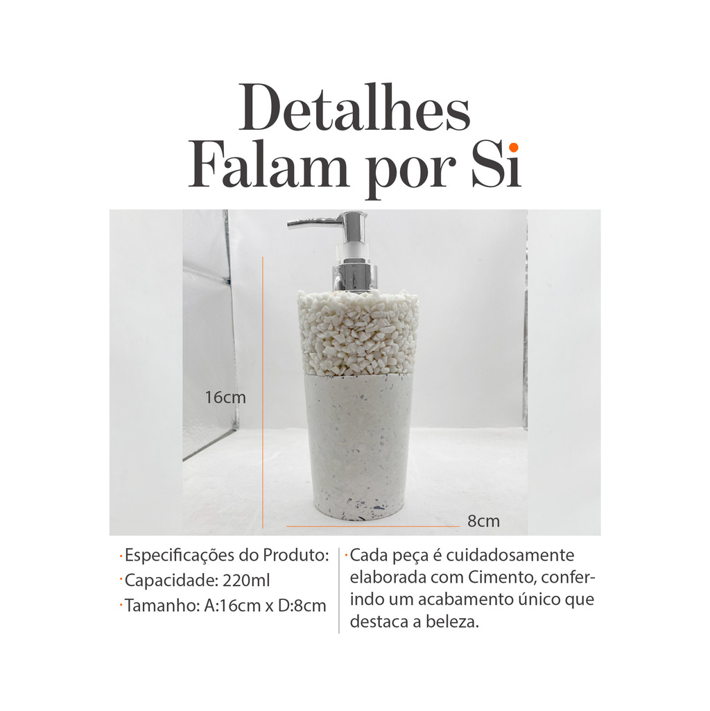 Olá, querido(a) cliente da Multitudo Casa! Com mais de 15 anos de experiência, estamos aqui para tornar o seu lar ainda mais especial. Agora, vamos falar sobre um item que vai transformar o seu lavabo ou banheiro: a Saboneteira Líquida Artesanal De Cimento Com Pedras naturais. Imagine um toque de elegância e sustentabilidade no seu espaço. Este porta sabonete é mais do que um simples acessório – é uma obra de arte funcional. Aqui estão alguns motivos pelos quais você vai adorar tê-lo: Nosso Porta Sabonete Artesanal oferece um local seguro e elegante para o seu sabonete líquido. Mantenha o lavabo organizado e com um toque de estilo. Benefícios do Produto:Estilo Artesanal: Cada peça é única, feita à mão com amor e cuidado.Durabilidade: O cimento e o acabamento em Pedras Naturais garantem que este porta sabonete dure por muito tempo.Sustentabilidade: Feito com materiais naturais e impermeabilizado para resistir à umidade.Decorativo: Além de funcional, é uma peça decorativa que vai encantar seus convidados. Especificações Técnicas:Material do Corpo: CimentoAcabamento: Pedras NaturaisCor do Corpo: CinzaMaterial da Válvula: PlásticoCor da Válvula: Preto Garantia: Oferecemos uma garantia de 6 meses contra defeitos de fabricação. Sua satisfação e confiança são nossa prioridade. Aproveite e leve para casa o Porta Sabonete Saboneteira Líquida Para Lavabo Banheiro Artesanal De Cimento Com Granilite. Um toque de beleza e funcionalidade para o seu dia a dia. Agradecemos a sua visita à Multitudo Casa! Volte sempre.