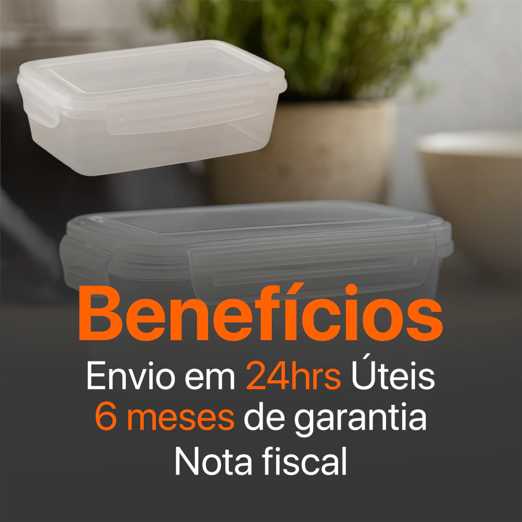 O Pote Baixo 1,25 L foi pensado para quem busca praticidade, higiene e organização. As travas laterais proporcionam fechamento seguro para transportar e armazenar lanches, saladas, porções de refeições, frios e sobremesas. O corpo transparente acelera a rotina: você identifica o conteúdo de imediato — na geladeira, no freezer ou na despensa.