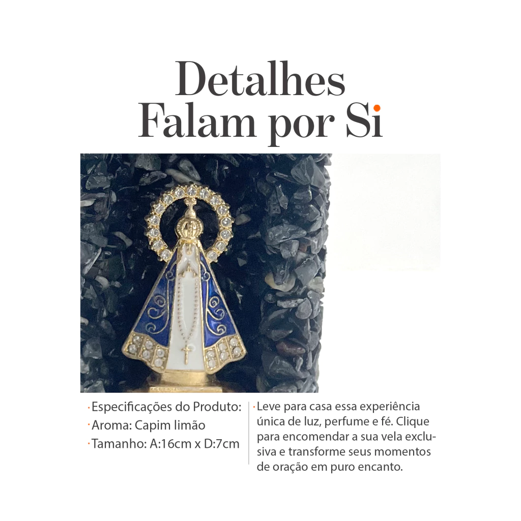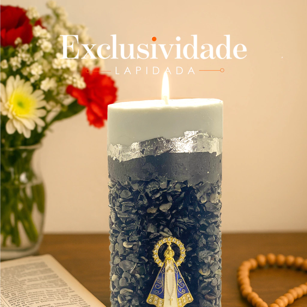 1 - Vela Decorativa Com Pedras Pretas E Imagem De Nossa Senhora Aparecida
